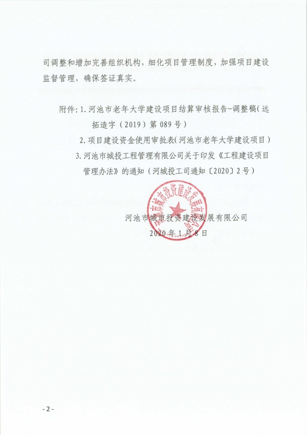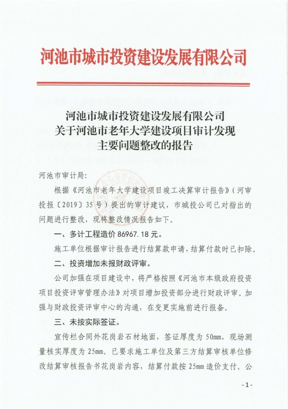 關于河池市老年大學建設項目審計發現主要問題整改的報告